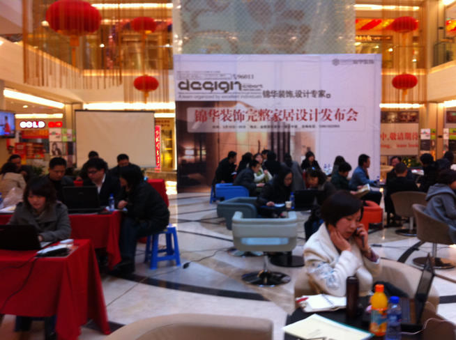 在一樓中央?yún)^(qū)域,近20位全國(guó)優(yōu)秀設(shè)計(jì)師接待業(yè)主的裝修咨詢;周邊液晶電視,不間斷的播放《堂杰支招》,增加業(yè)主對(duì)裝修的認(rèn)識(shí)。兩天的時(shí)間,來(lái)訪客戶絡(luò)繹不絕。一方面,眾多的城西區(qū)域業(yè)主在錦華找到了符合自己需要的設(shè)計(jì)師;另一方面,更多的業(yè)主通過(guò)與錦華優(yōu)秀設(shè)計(jì)師的溝通,加深了對(duì)家裝的認(rèn)識(shí)。